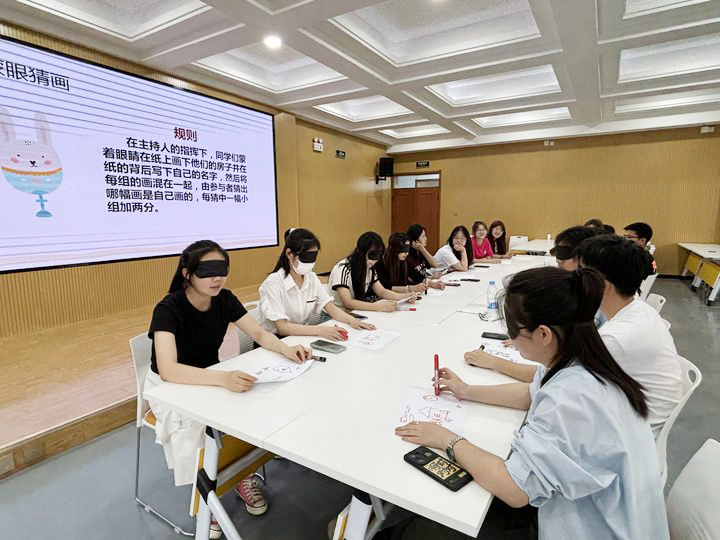 特色活动,发挥朋辈关怀。学院为同学们准备了形式多样的互动体验。在“成长的催化剂”环节里,同学们陆续表达了自己在生活中遇到的各种危机以及上学期间的烦恼,开展“跨越危机”小游戏;在“未来将为你打开”环节里,同学们互相为这些小烦恼出谋划策;在“从理解自己开始”环节里,同学们介绍自己的爱好,其他同学写下初印象,让每个人都能看到别人眼中的自己。通过各类团辅小游戏帮助同学们更好的理解危机、理性、成长,感受到来自朋辈的力量,与朋辈共同成长。